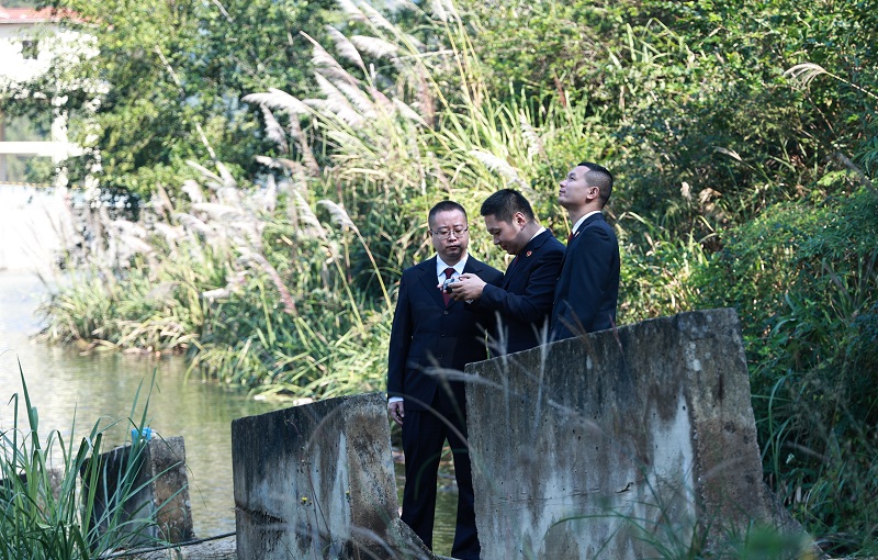 大滩口水库为河道型水库,库岸线长约40公里,库区地跨湖北省利川市、重庆市万州区和石柱土家族自治县三地,是万州区水源地之一。近日,利川市检察院与万州区检察院联合对大滩口水库河道堵塞、库区违建问题整改情况开展“回头看”。经巡查,确认目前受损岸线已得到有效修复,违建厂房已拆除,库区蓄水正常。图为检察官操纵无人机查看库区情况。(通讯员牟丹摄)