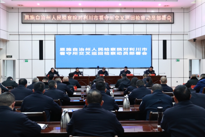1月19日,恩施州检察院交叉巡回检察组对利川市看守所交叉巡回检察动员部署会在利川市公安局召开。恩施州检察院党组成员、副检察长、交叉巡回检察组组长王本强及检察组全体成员,恩施州公安局监管支队、利川市公安局、利川市检察院相关负责人,利川市消防救援局、市卫生健康局相关工作人员参加会议。
