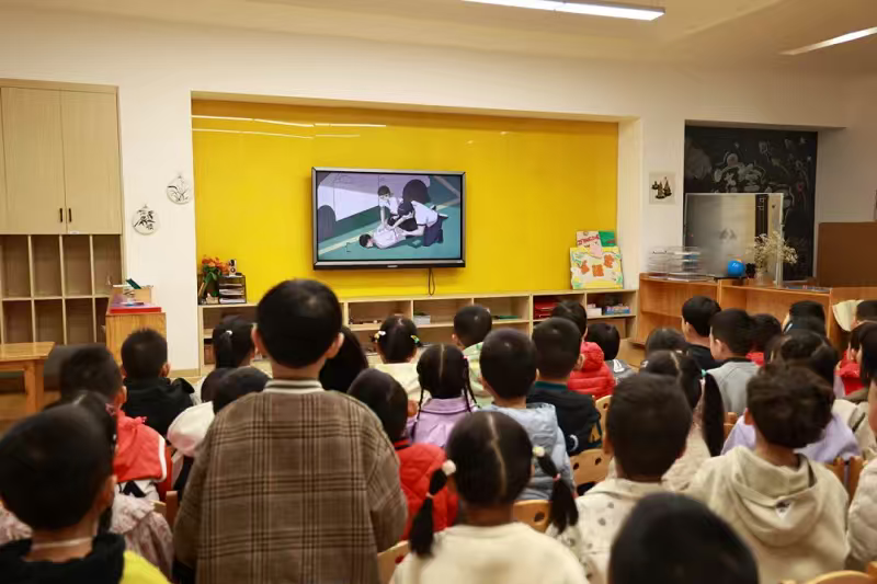 2025年10月23日,检察干警为幼儿园大班学生播放法治微动漫《魔鬼的“面纱”》。